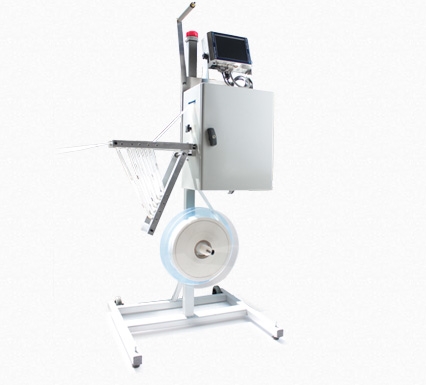 L’ensemble de la machine, Polyprint, livrée sur pied avec son dérouleur de polybande et son système d’appel automatique la rend autonome et ne demande aucune modification des ensacheuses.